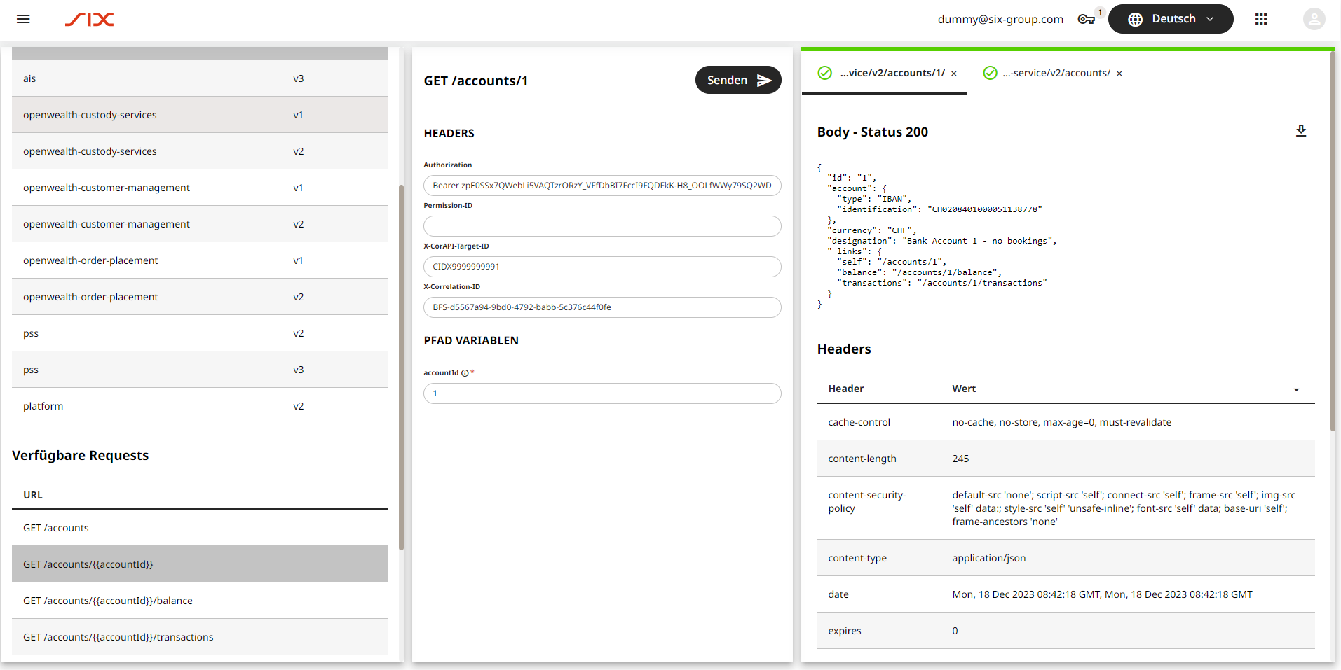 - Perform individual API-Calls (all business-APIs, and Platform)